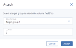 В окне Присоединить выберите тома для присоединения к группе целевых устройств (при необходимости создайте их) и нажмите Присоединить.