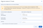 В окне Мигрировать сеть: <имя сети> проверьте текущую сетевую конфигурацию, ознакомьтесь с информацией о потенциальных рисках и при необходимости измените новую сетевую конфигурацию.