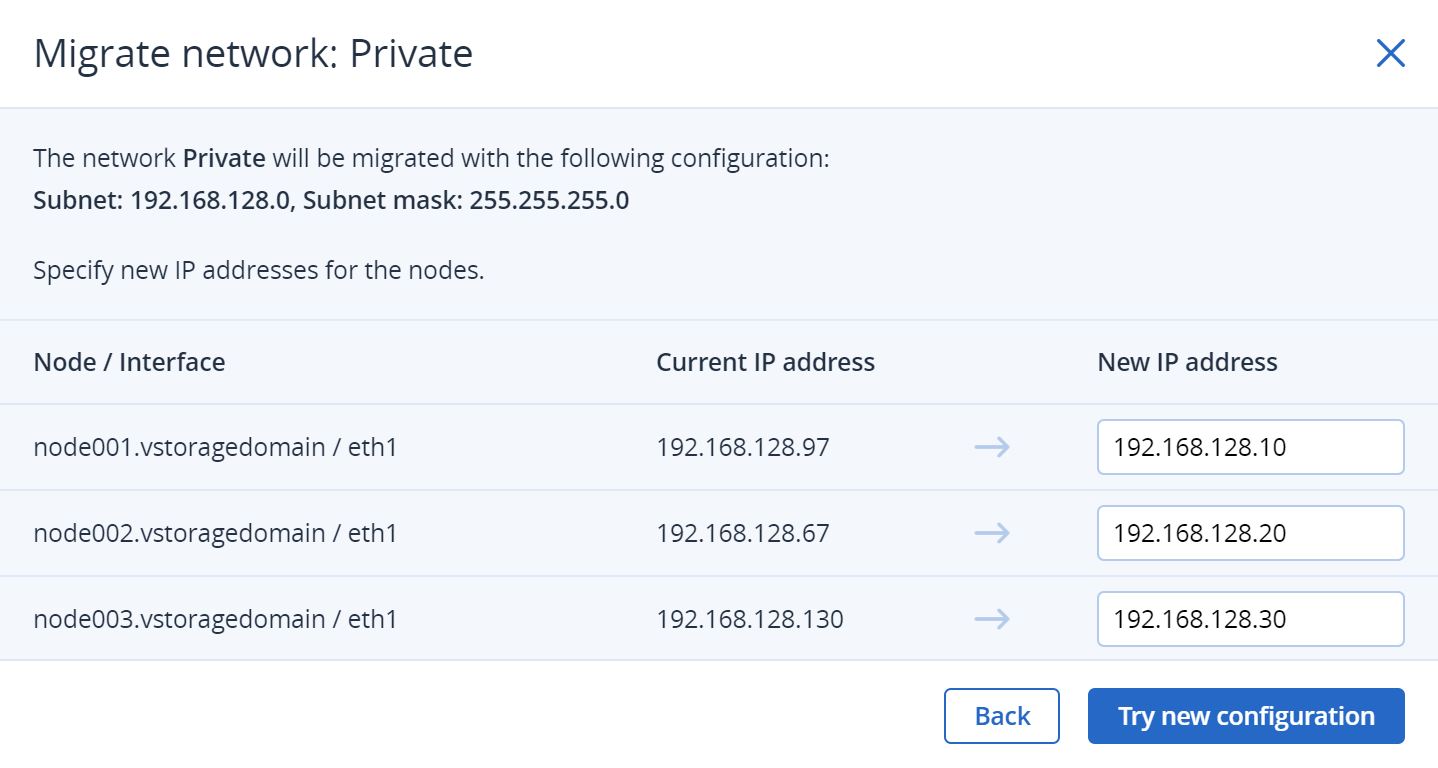 Сетевую конфигурацию и назначение IP-адресов серверам кластера можно изменить с помощью миграции сетей.