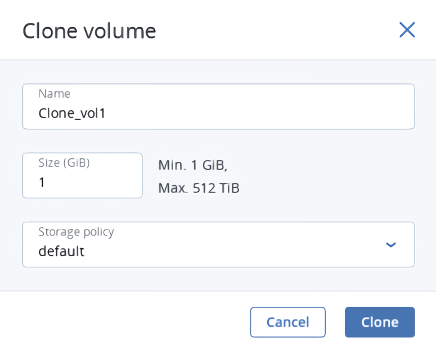 - Можно клонировать тома, которые не присоединены к ВМ или присоединены к остановленным ВМ.