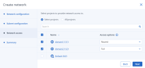 Выберите проекты, для которых нужно обеспечить сетевой доступ: