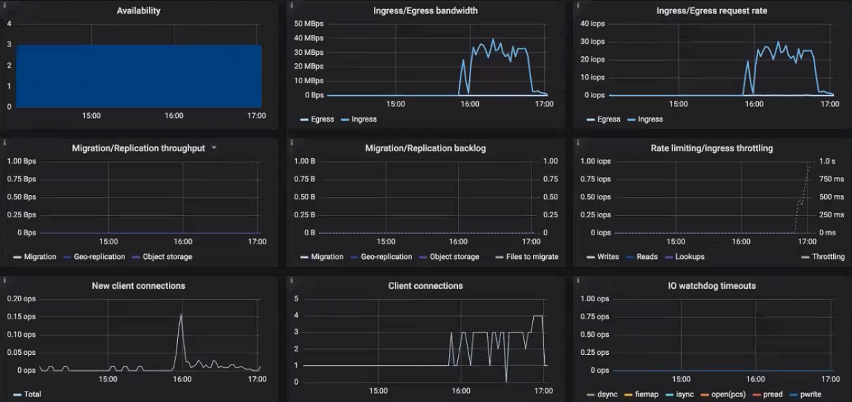 Остаток миграции/репликации. Диаграмма миграции со временем должна уменьшаться. Диаграмма репликации должна показывать значение около нуля, высокие значения указывают на проблемы с сетью.