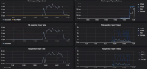 - Диаграмма Задержка присоединения показывает время, потраченное на обработку запросов, и должна в среднем показывать несколько десятков миллисекунд с пиковыми значениями ниже одной секунды.